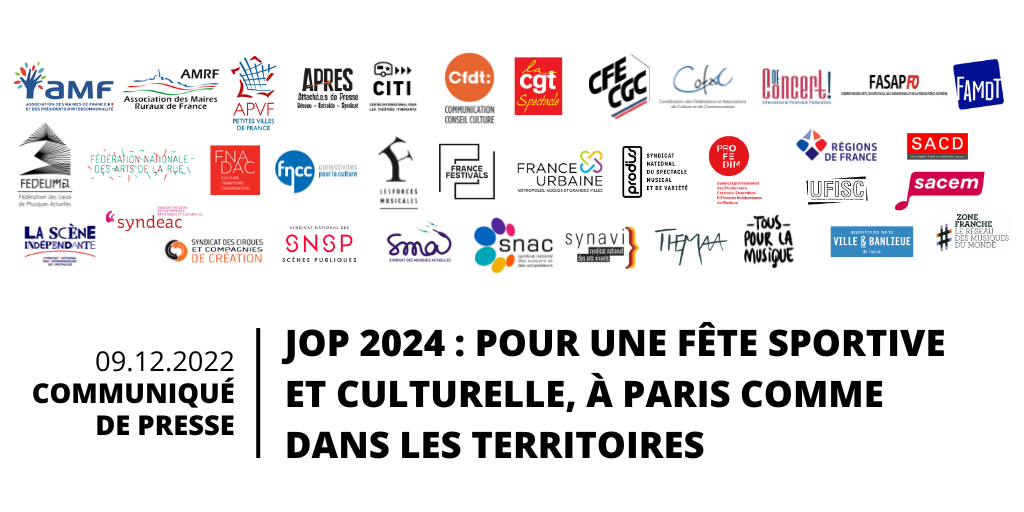 Découvrez le communiqué de presse « JOP 2024 : POUR UNE FÊTE SPORTIVE ET CULTURELLE, À PARIS COMME DANS LES TERRITOIRES » diffusé le vendredi 9 décembre 2022, en marge d’une conférence de presse organisée sur les Transmusicales de Rennes, et signé en partie par l’UFISC, le SMA et la FEDELIMA, partenaires et amis du RIF.