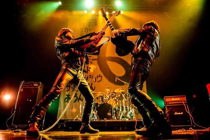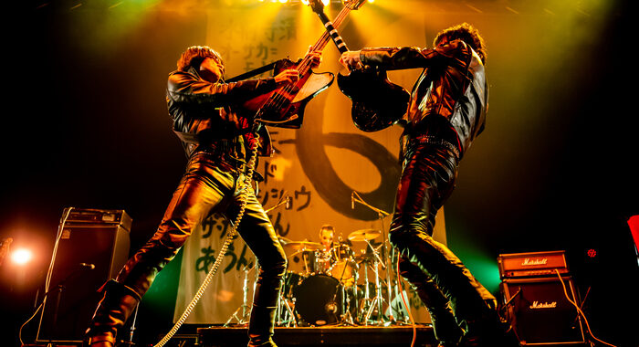 Dans la lignée des Ramones ou des Cramps, les Japonais de **Guitar Wolf** forment un groupe de punk dont la devise est de jouer « toujours plus vite, toujours plus fort ». Fidèles à leur « Jett Rock And Roll » (faisant référence à Joan Jett), le combo s’articule autour du format guitare-basse-batterie pour nous livrer des hymnes sauvages et destructeurs excédant rarement les deux minutes montre en main. Un croisement énergique entre Ramones, le rockabilly, le punk 77 et le garage rock. Le trio de Nagasaki a mérité au fil des années son statut de groupe culte dans le monde entier, comme aucun autre groupe japonais avant ! Depuis 1987 (!), leurs performances live féroces – et leur participation au film Trash-rock’n’roll « Wild Zero » – ont retenu l’attention partout dans le monde.